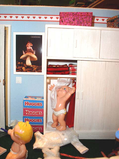 murs sont tendus de tissu. Le mobilier est bois peint.