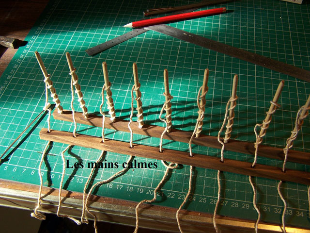torsadée. Un bout de la corde est pris dans le bas percé,