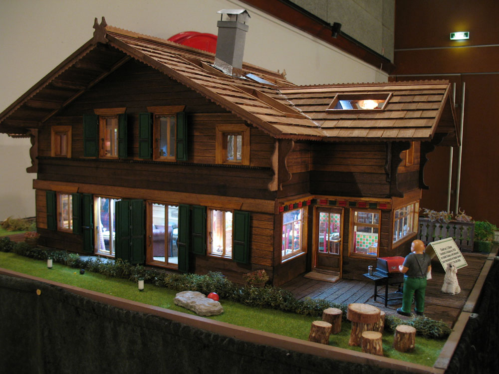 Chalet éclairé lors d'une exposition