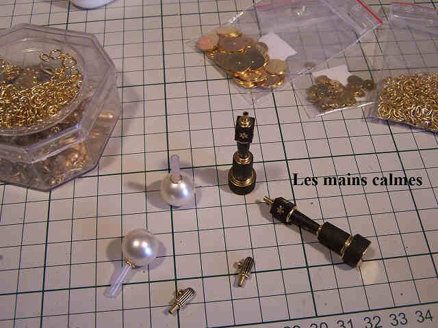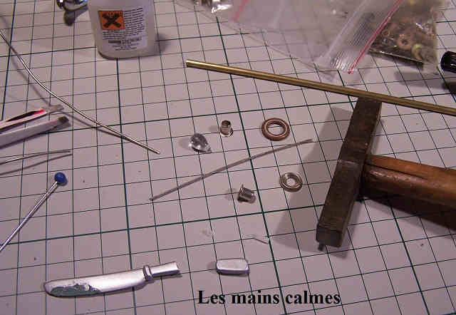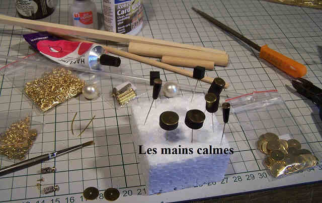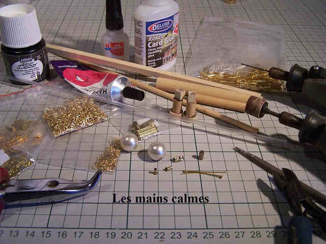 Perles, tourillons et carrelets de bois, rondelles, anneaux, rivets, clous et colle.