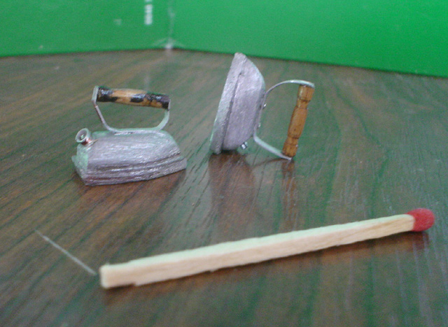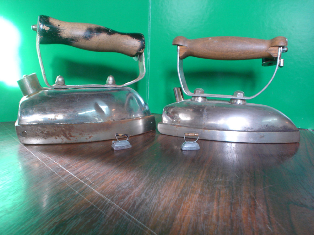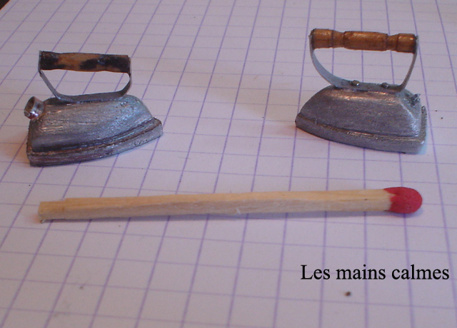 d'anciens fers à repasser recyclés en poids. A l'échelle