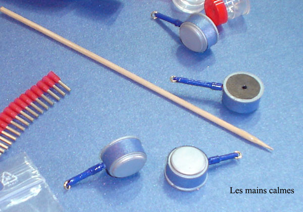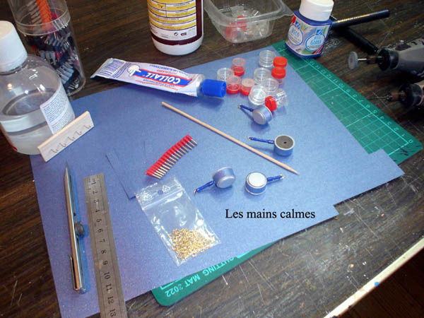 chrome et peinture bleue, vernis, petits anneaux, colle