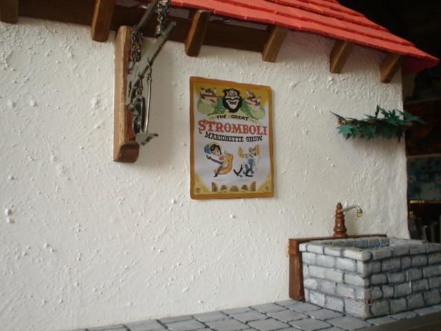 L’enseigne est faite à partir d'une scie (bûche de Noël) et d'outils trouvés sur des porte clés.