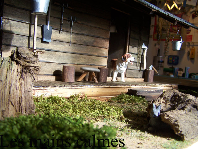 de ce diorama sont de la marque Schleich. Le décor rocheux est en